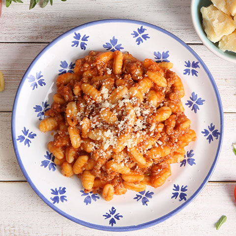 Questo piatto, anche conosciuto come malloreddos, è un tipo di pasta tipica sarda facilmente riconoscibile per la sua forma a conchiglia rigata. Viene mangiato con varie salse e con vari formaggi grattuggiati.